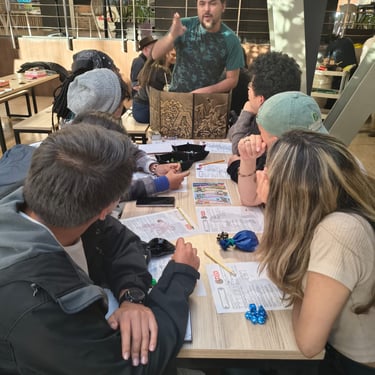 Como quien convoca a un aliado en una taberna al final del universo, le propuso a Cris-Lobo unirse en esta aventura, un tejedor de historias, y bajo el amparo de los muros de la tienda TooGeek, sellaron el primer pacto. Allí nació la cofradía: un espacio donde el rol trascendía el juego para ser alquimia sagrada. Su magia distintiva consistía en transmutar el cansancio y las tormentas internas de la semana en fuego narrativo, permitiendo que cada jugador liberara su espíritu a través de los dados.